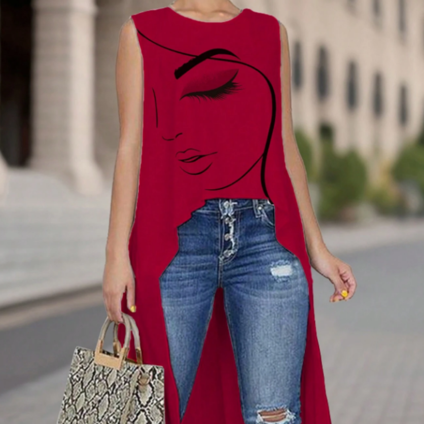 Summer Sweet V-neck Printing Design Sense With Chest Pad Tied Top